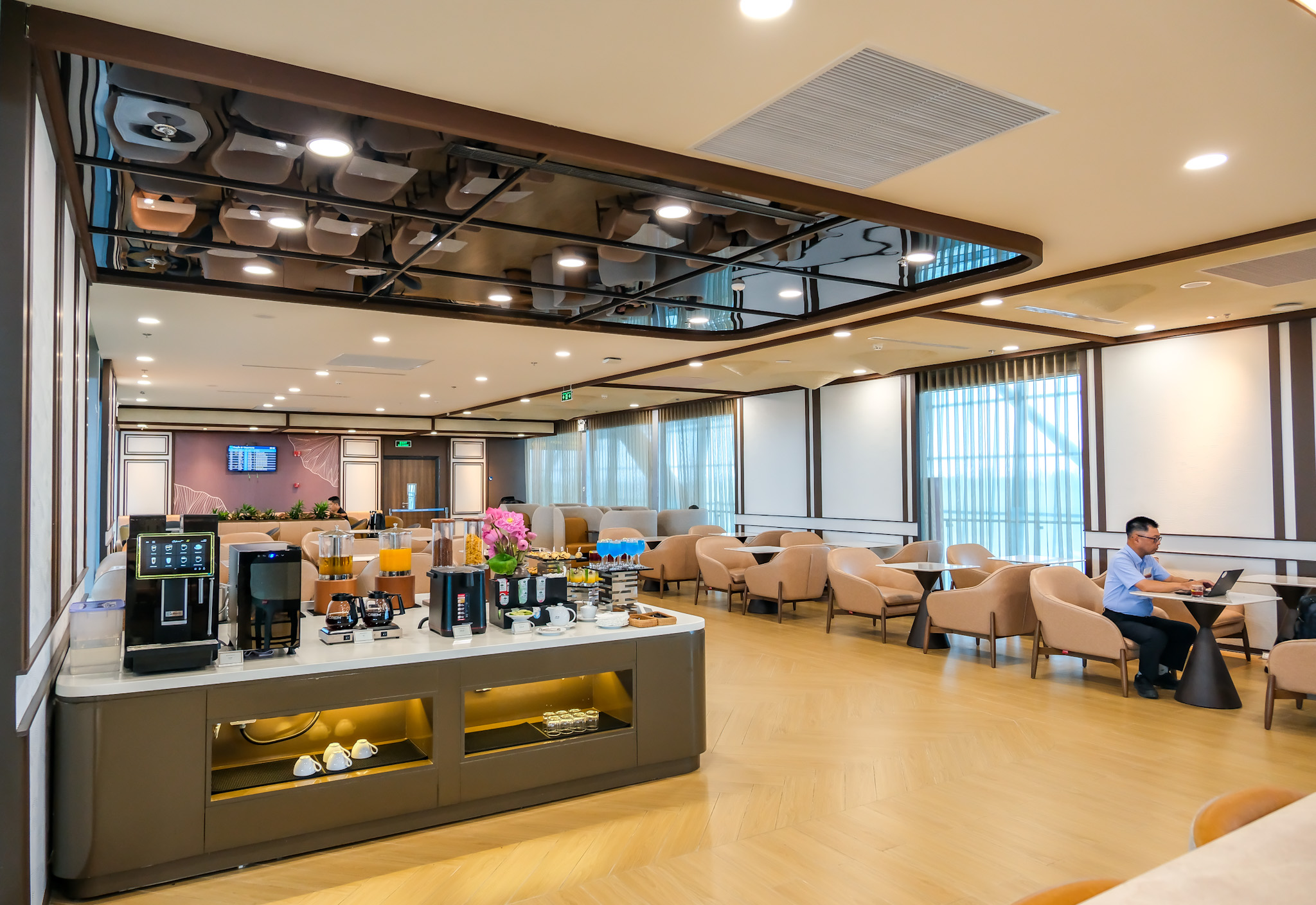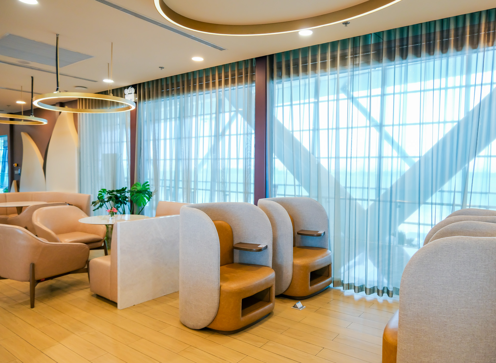 Lotus Lounge is thoughtfully equipped with private sleep chairs, catering to guests’ needs for relaxation as well as focused, individual work.