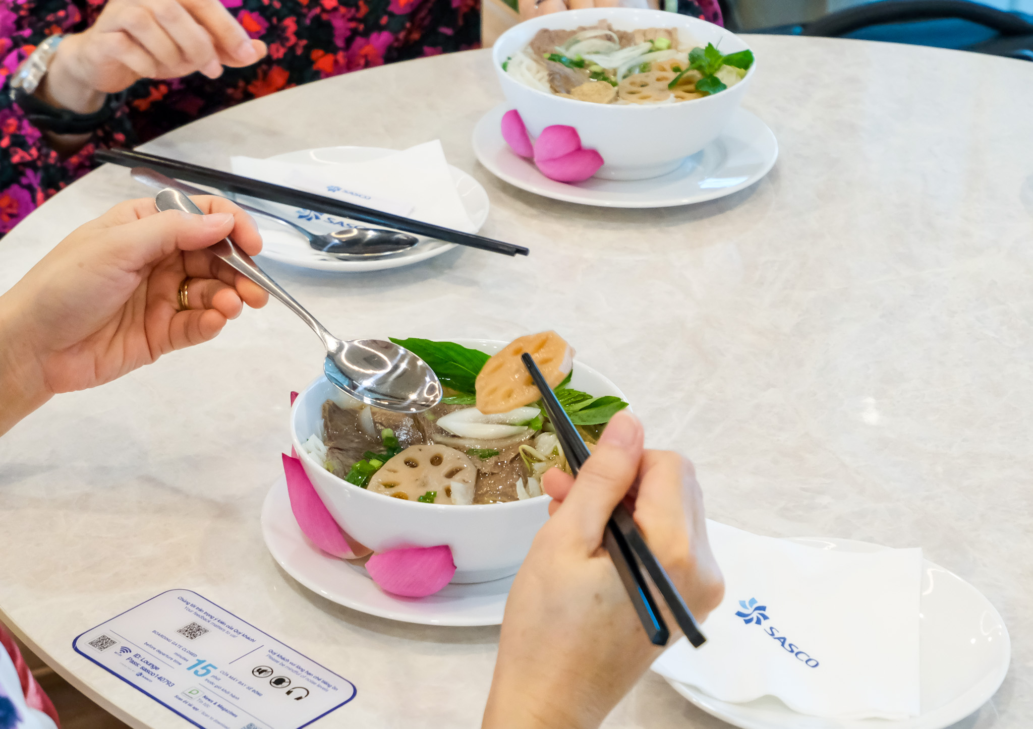 Choose a quiet corner to enjoy the rich flavors of our signature Lotus Pho paired with a delicate cup of roasted rice tea, in Lotus Lounge — a space full of Vietnamese spirit, where every detail is carefully curated by our dedicated staff, offering warmth and sincerity that makes guests feel truly “at home” amid the bustling journeys.