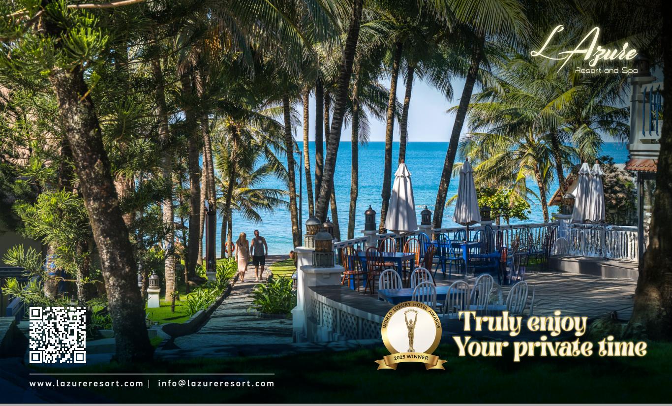 Những giải thưởng TripAdvisor Travelers’ Choice, điểm số ấn tượng 9.5 trên Trip.com và 9.4 trên Booking.com vừa đón nhận đầu năm 2026 là những con số biết nói, minh chứng cho một dịch vụ từ trái tim, L’Azure đã khẳng định vị thế của mình bằng chính sự hài lòng thực tế của mỗi du khách ghé thăm.