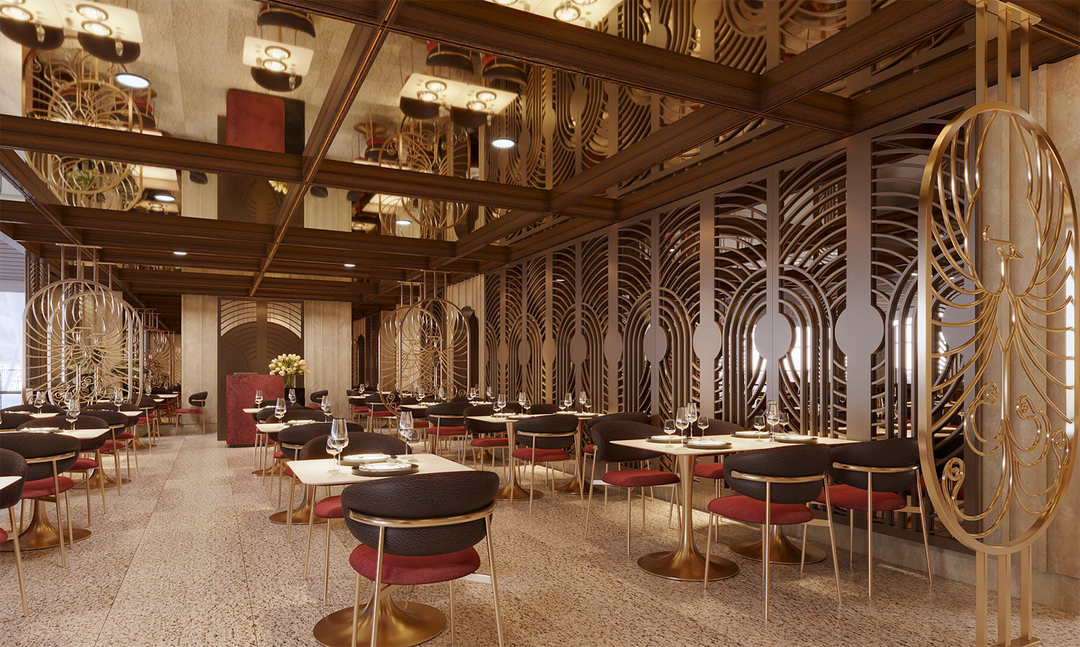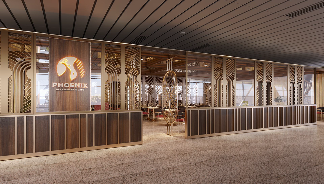 Located on the third floor of Terminal 3, with an area of 140m², The Phoenix is crafted with elegant curves, evoking the majestic wings of the phoenix in graceful flight. The restaurant’s space blends vibrant shades of orange and red with intricate patterns, creating a signature atmosphere that is both sophisticated and warm. With a variety of seating areas, the space ensures comfort and privacy for every guest.