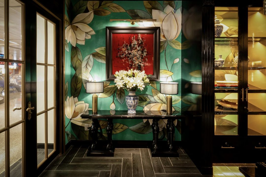 Khác biệt trong concept, kiến trúc: Thiết kế của phòng chờ là sự kết hợp giữa phong cách British Colonial cổ điển phương Tây và nét đẹp văn hóa Việt Nam, trưng bày các vật phẩm trang trí từ làng nghề truyền thống hay các tác phẩm tranh của họa sĩ đương đại, tạo nên một không gian chờ bay thưởng lãm nghệ thuật tinh tế, đậm chất văn hóa.