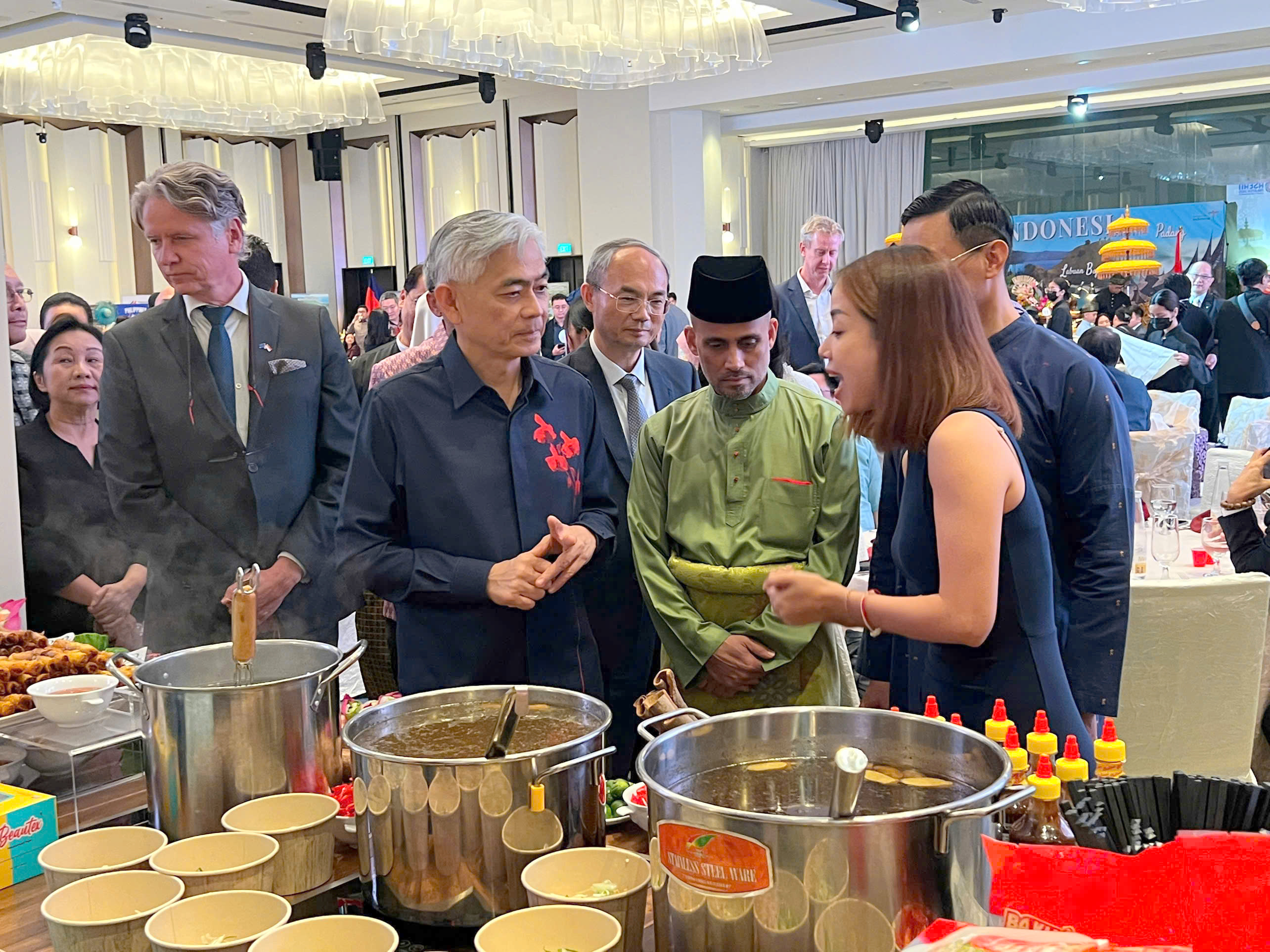 Bữa tiệc ẩm thực năm nay là hành trình khám phá hương vị và bản sắc Asean. Malaysia, quốc gia Chủ tịch luân phiên, giới thiệu Nasi Lemak (cơm nước cốt dừa) và Satay (thịt xiên nướng) đậm đà; Thái Lan quyến rũ với Pad Thái, trong khi Indonesia mang đến hương thơm đặc trưng của Nasi Goreng…