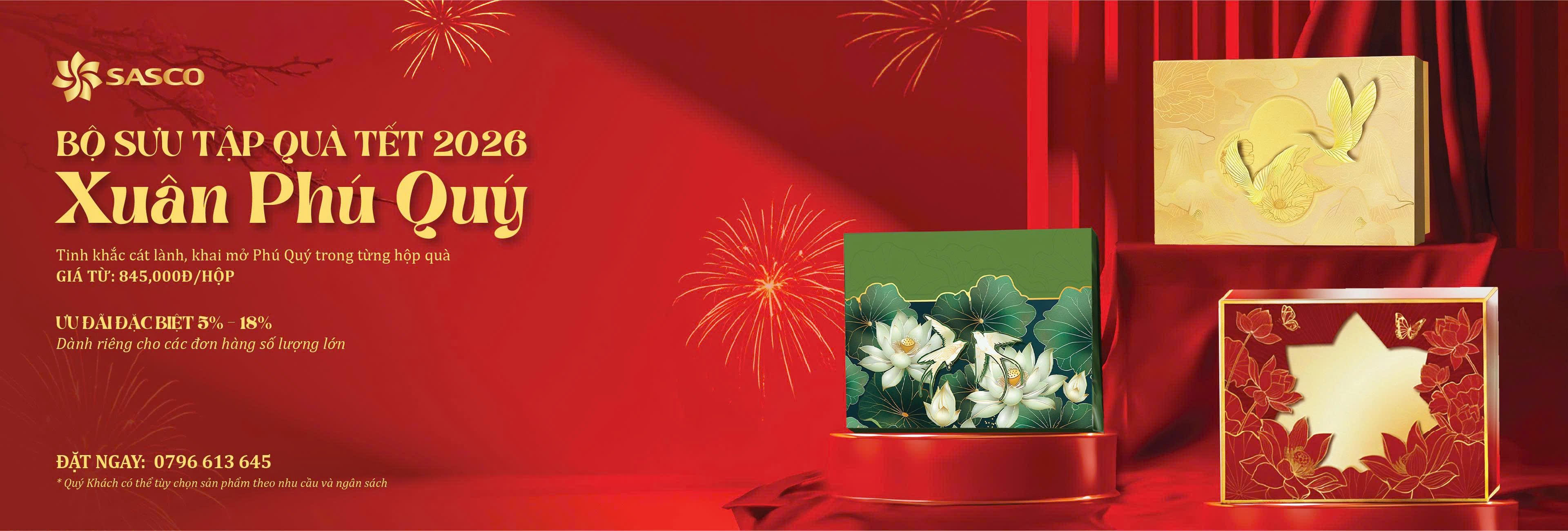 Với kinh nghiệm trong lĩnh vực bán lẻ và dịch vụ, SASCO tự hào lần đầu tiên ra mắt Bộ Sưu Tập Hộp Quà Tết 2026 được tuyển chọn từ những sản phẩm tinh túy, trau chuốt tỉ mỉ trong từng chi tiết. Mỗi hộp quà là sự kết hợp của sự sang trọng - ý nghĩa, gửi gắm thông điệp Thịnh Vượng & May Mắn cho một khởi đầu mới.