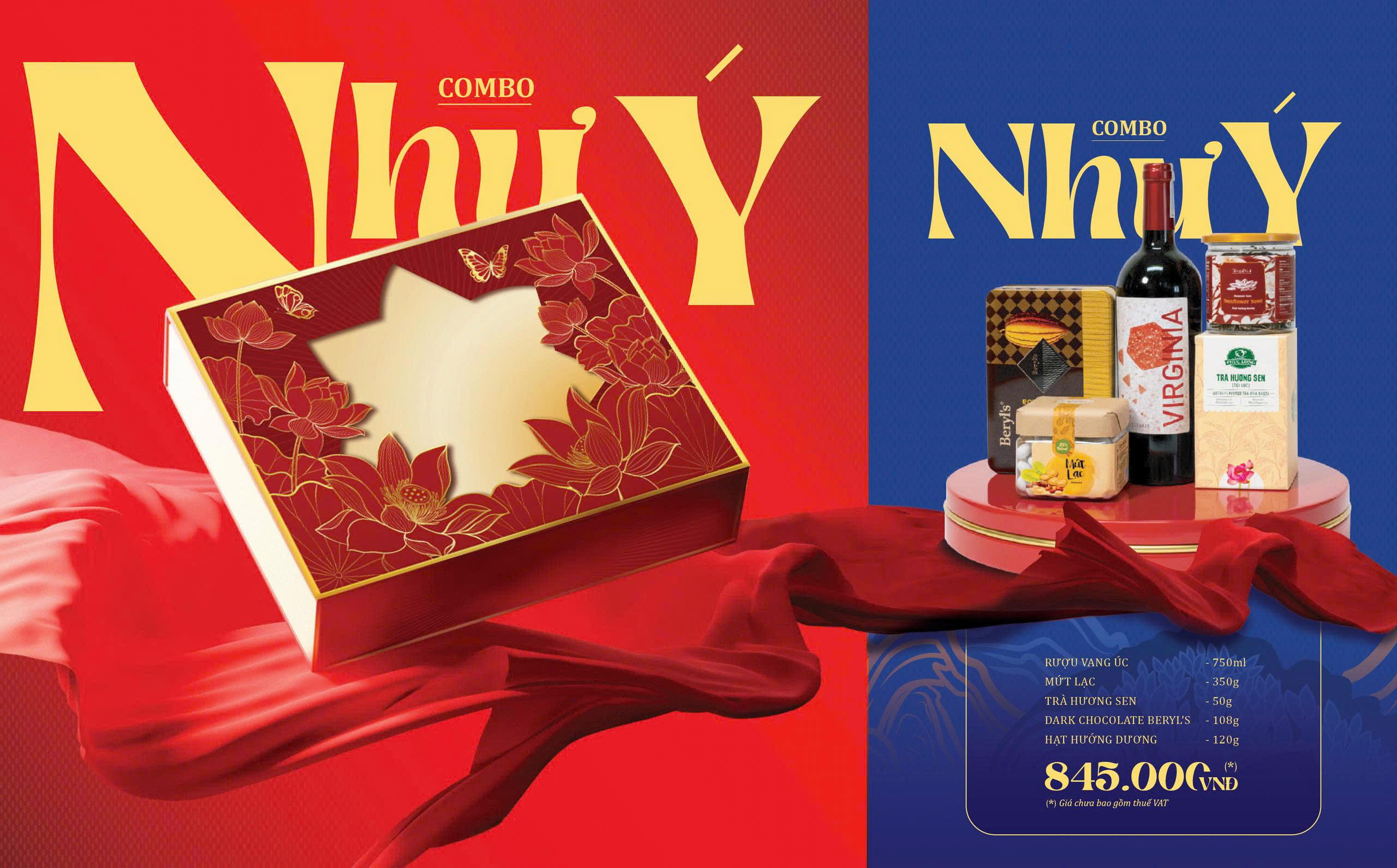 “Như Ý” gửi gắm lời chúc đầu năm vạn sự hanh thông, mọi điều trọn vẹn theo mong ước. Hộp quà nổi bật với sắc đỏ ruby và vàng ánh kim sang trọng, điểm xuyết hoa sen – biểu tượng thịnh vượng, cùng cánh bướm mang ý nghĩa khởi đầu may mắn. Đây là món quà Tết tinh tế, đẳng cấp, thay lời chúc Vạn sự như ý – Hạnh phúc trọn vẹn đến đối tác, khách hàng và người thân yêu.